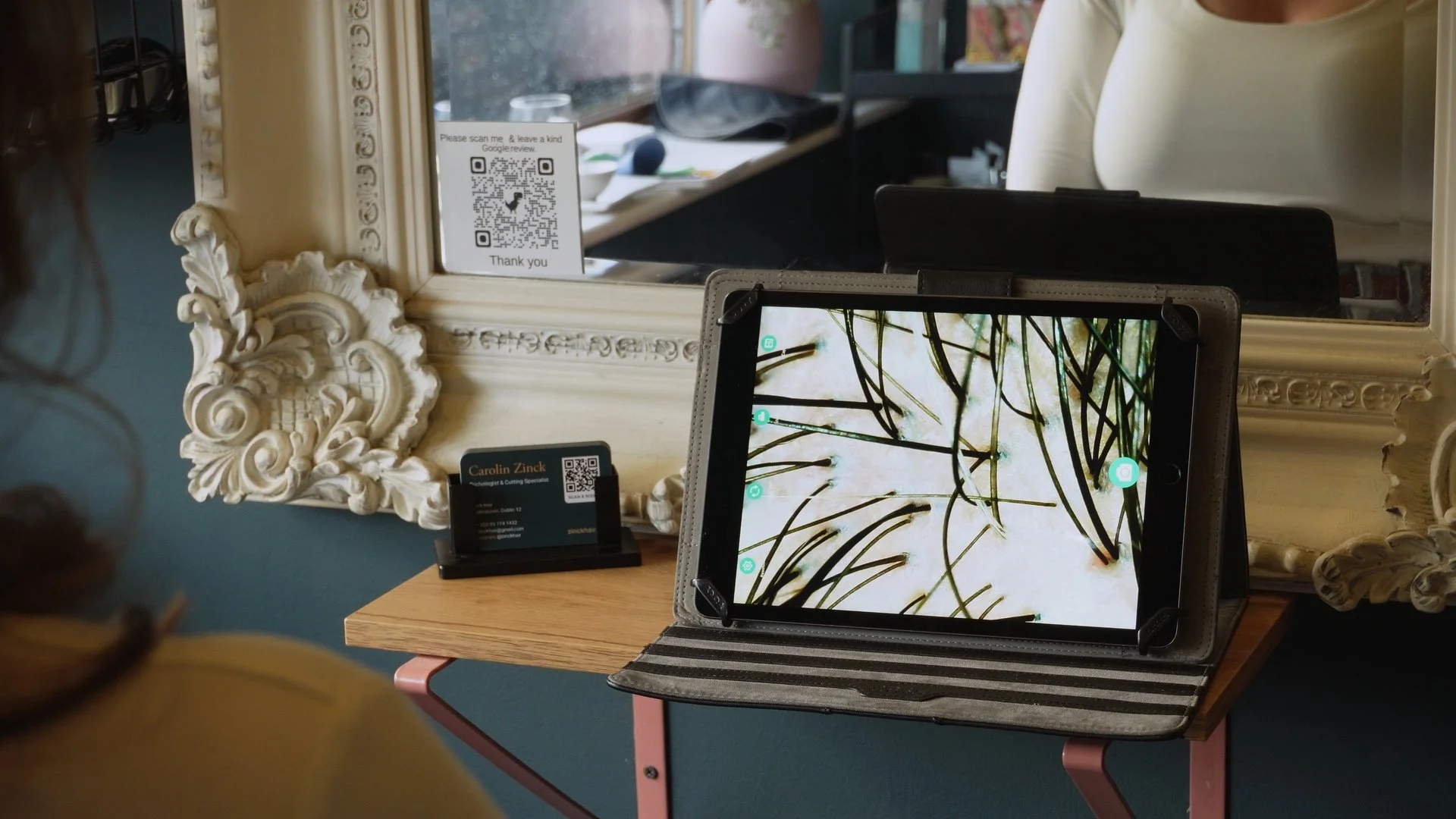 At your scalp treatment service, I begin by analyzing your scalp with a trioscope and discussing your concerns and possible treatment options. I then use luxurious products tailored specifically for you and your scalp needs.