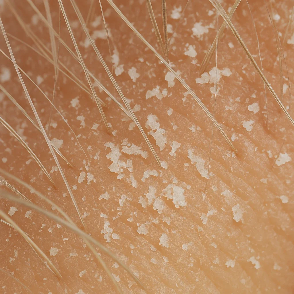 Dandruff is the mildest form of scalp flaking. It happens when the scalp’s natural renewal cycle speeds up slightly. Instead of skin cells shedding invisibly, they shed in small clumps that become visible as white flakes.